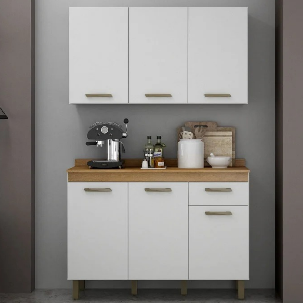 Estrutura de Alta Qualidade: Produzido em MDP, garantindo resistência e estabilidade para suportar o peso de louças, eletrodomésticos e mantimentos com segurança.