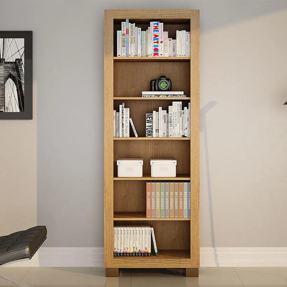 Prateleiras Planejadas: Conta com 05 prateleiras amplas, projetadas com um espaçamento ideal de 50x30x27 cm, perfeito para acomodar desde caixas organizadoras e sapatos até produtos de limpeza ou mantimentos.