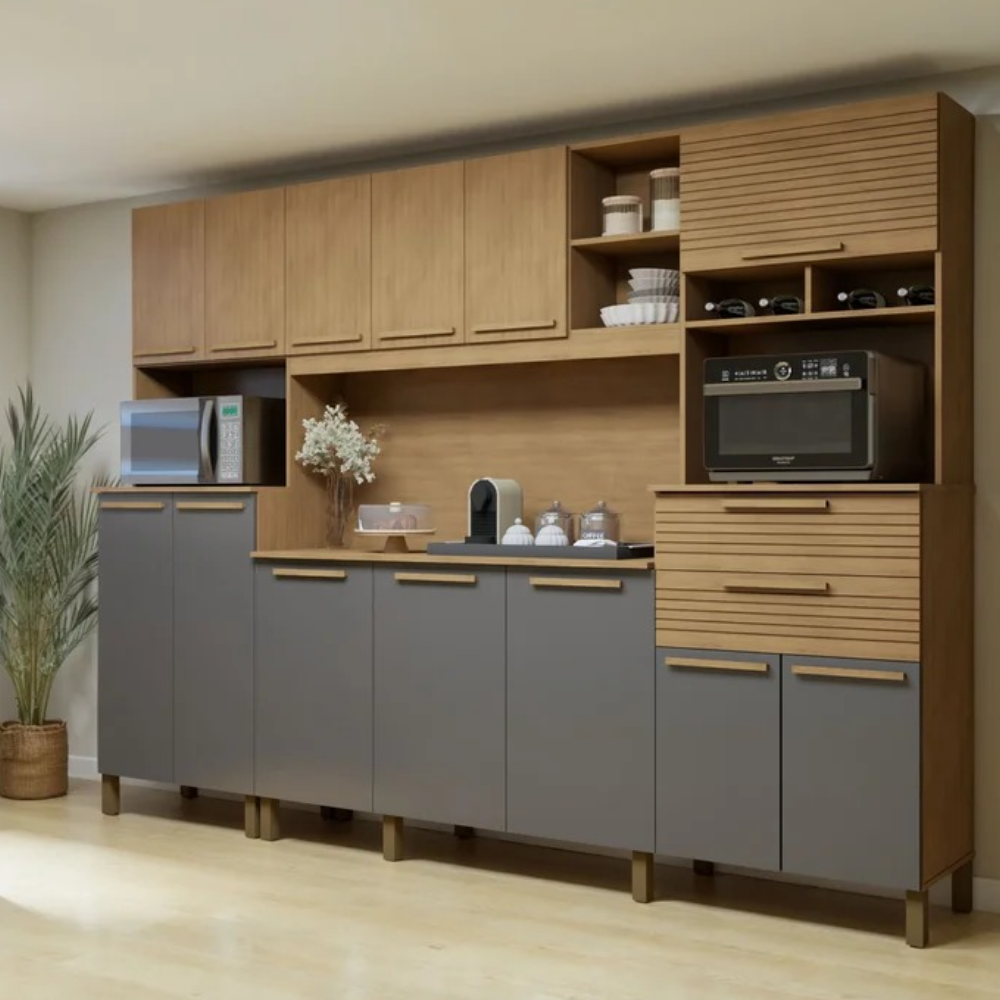 Organização Eficiente: Com tantos nichos, a bagunça visual desaparece. Cada utensílio ganha um lugar específico, agilizando o preparo das refeições.