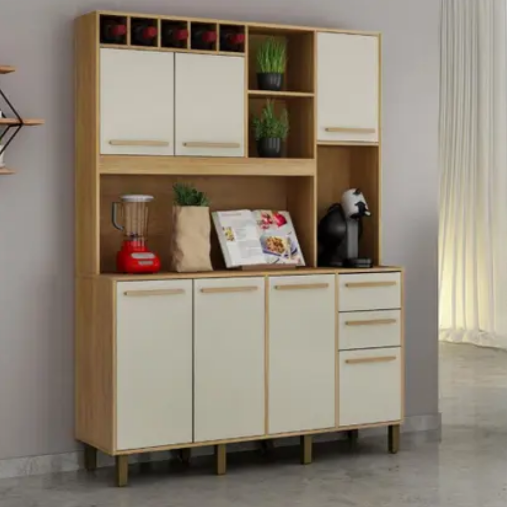 Configuração de Alta Performance: Com 7 portas e 2 gavetas, ele oferece uma divisão interna estratégica para separar mantimentos, louças e utensílios, aproveitando ao máximo a sua altura de 2 metros.