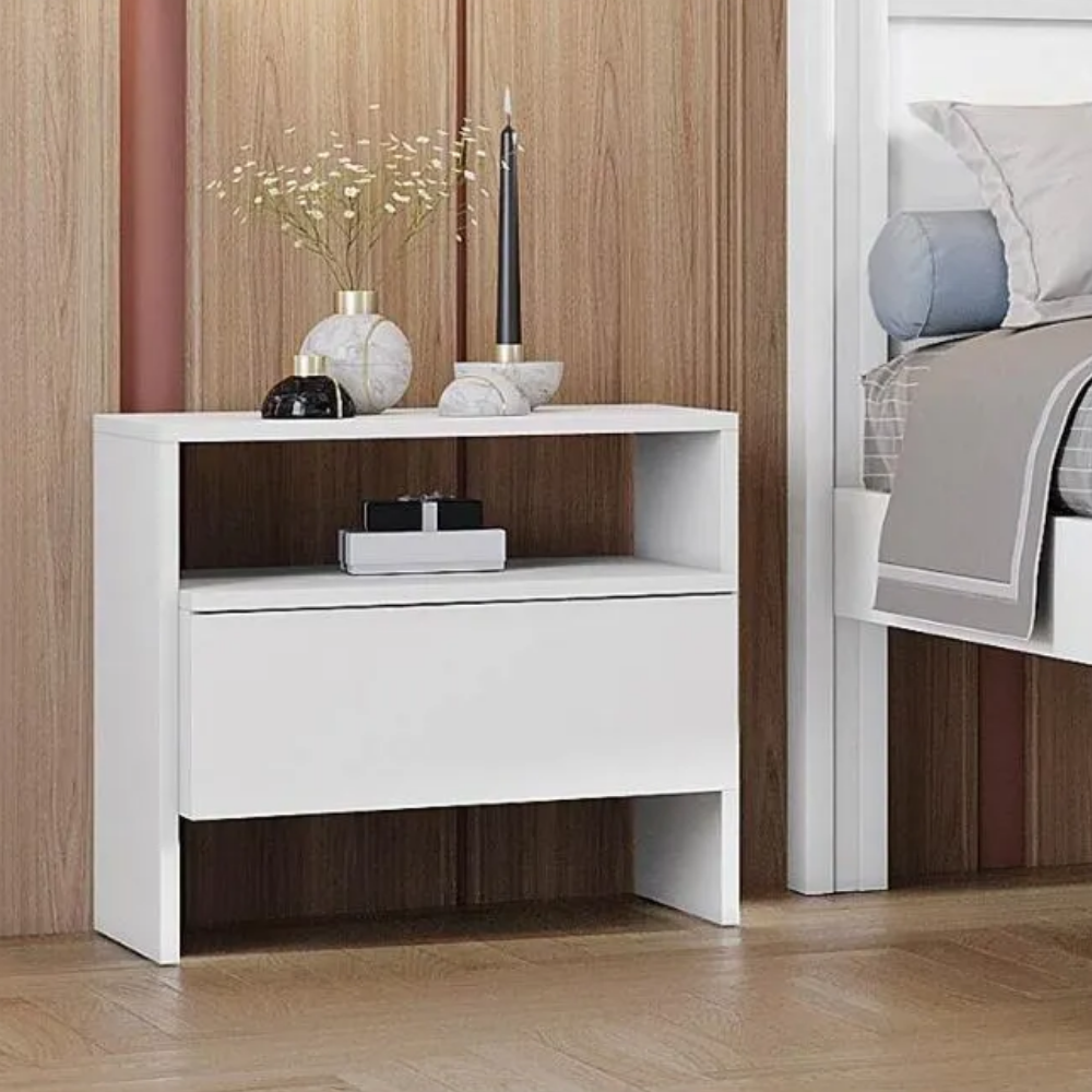 Foco no Essencial: Possui 1 gaveta espaçosa, ideal para guardar itens de uso imediato, como óculos, carregadores e leituras, mantendo o ambiente com aspecto sempre arrumado.