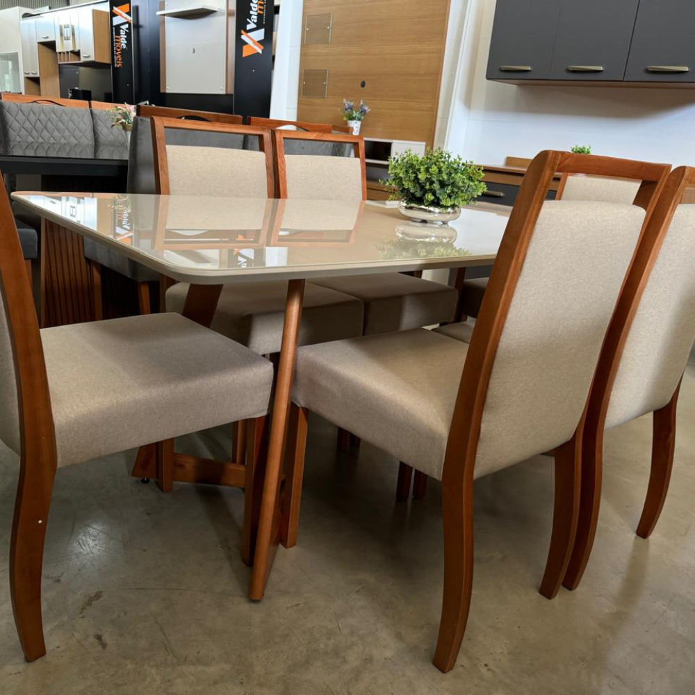 Amplitude Excepcional (180x90cm): O formato retangular alongado é ideal para grandes salas de jantar ou áreas gourmet integradas, permitindo acomodar até 6 cadeiras com ampla folga de movimentação e ergonomia.