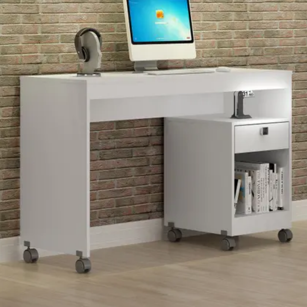 Armazenamento de Fácil Acesso: Possui uma gaveta com puxador em ABS e corrediça metálica, ideal para guardar papéis e acessórios de escritório, mantendo a superfície da mesa sempre limpa.