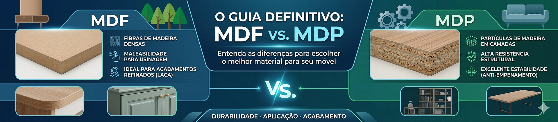 Muitos acreditam que o MDP é inferior ao aglomerado antigo, mas isso é um mito. O MDP moderno é um material de alta tecnologia. Em um móvel de alta qualidade, é comum ver a combinação dos dois: o MDP na estrutura para dar firmeza e o MDF nas portas para permitir o design.