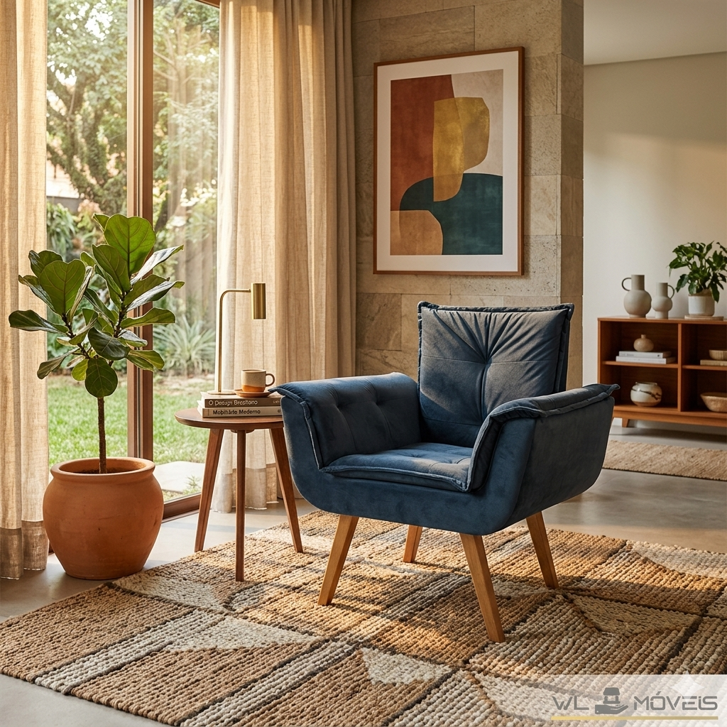 A WLPER01 é a escolha ideal para quem busca uma poltrona de leitura ou um móvel de destaque na decoração que entregue conforto real. Se você valoriza o toque suave do veludo e a estética dos pés palito em madeira, este modelo é o equilíbrio perfeito. É o móvel que convida ao descanso, ideal para complementar o sofá da sala ou criar um canto de amamentação aconchegante no quarto do bebê.