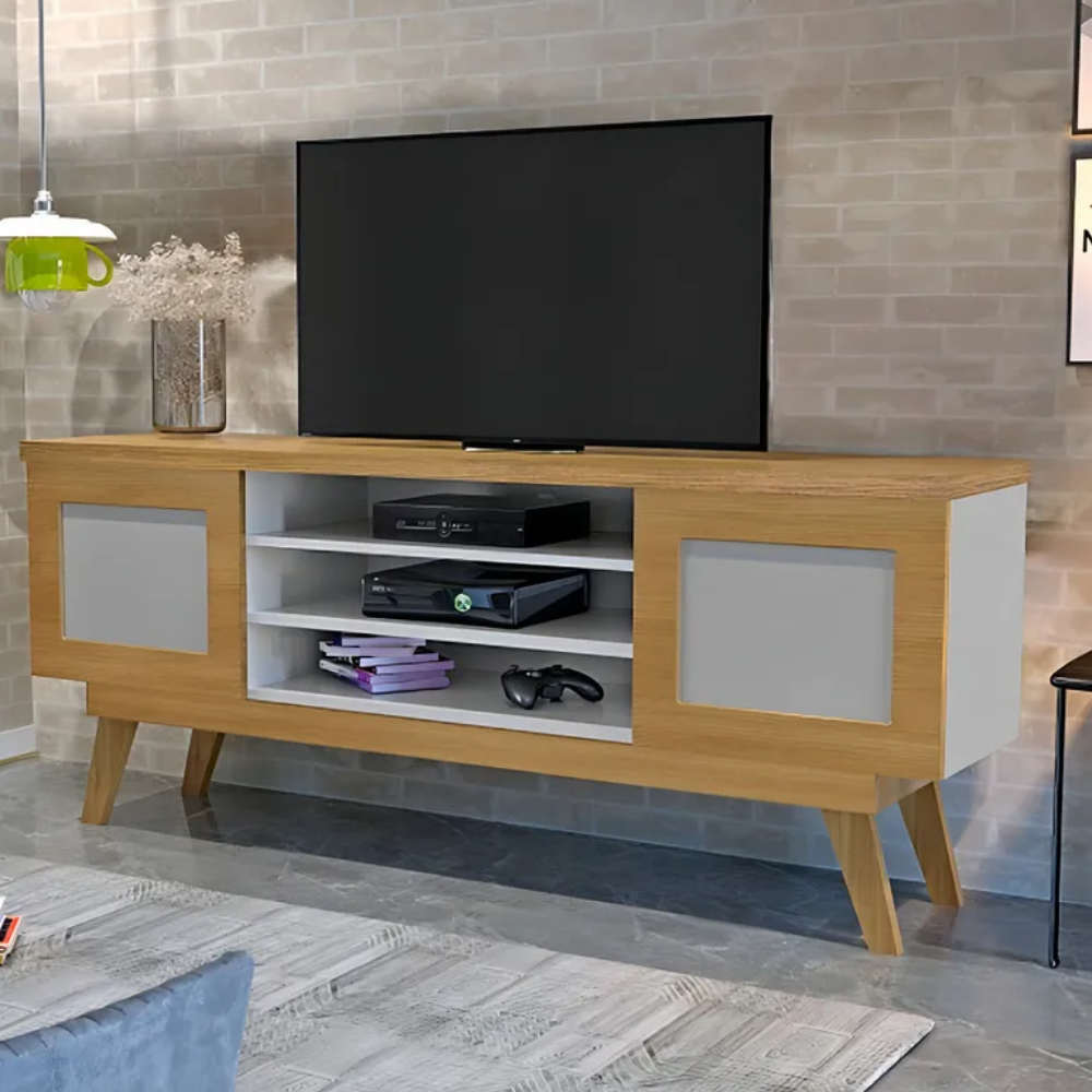 Organização Inteligente: Com duas portas espaçosas, você tem o lugar perfeito para guardar consoles, controles e coleções, mantendo o ambiente visualmente limpo e organizado.