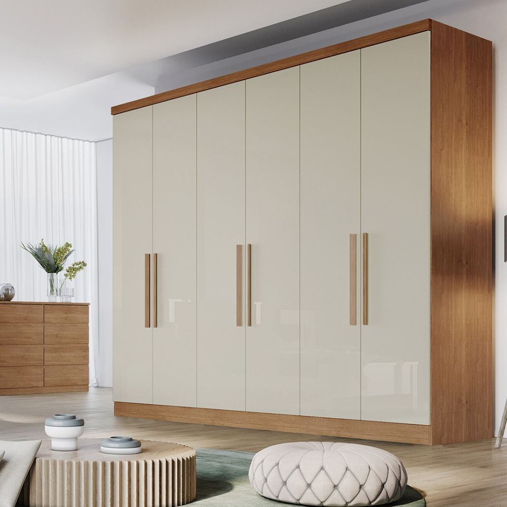 Visualização Completa: Com suas 6 portas de bater, o WLR104 permite a abertura total do armário, facilitando a visualização panorâmica de todas as suas roupas e acessórios de uma só vez.