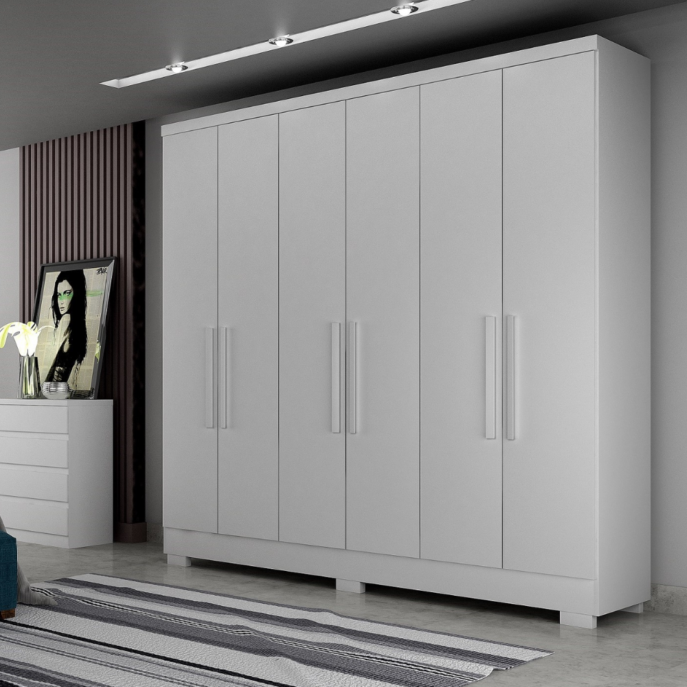 Organização Panorâmica: As 6 portas de bater permitem uma visualização completa do interior do móvel, facilitando o acesso rápido a roupas longas, dobradas e acessórios.