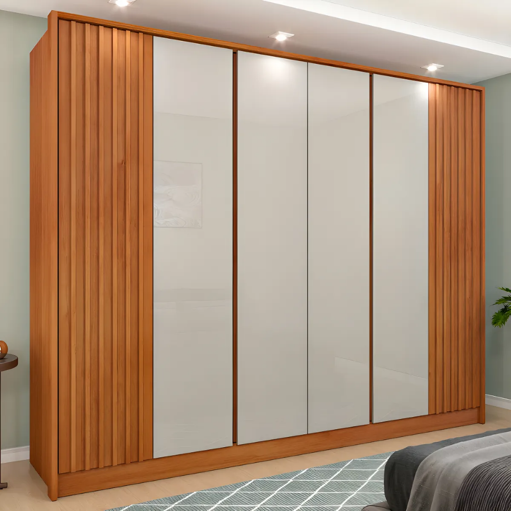 Estrutura de Alta Qualidade: Fabricado com chapas de 15mm em MDF e MDP, o roupeiro possui acabamento em pintura U.V. semi-brilho, que além de realçar a cor Cinamomo/Off White, facilita a limpeza e aumenta a durabilidade.