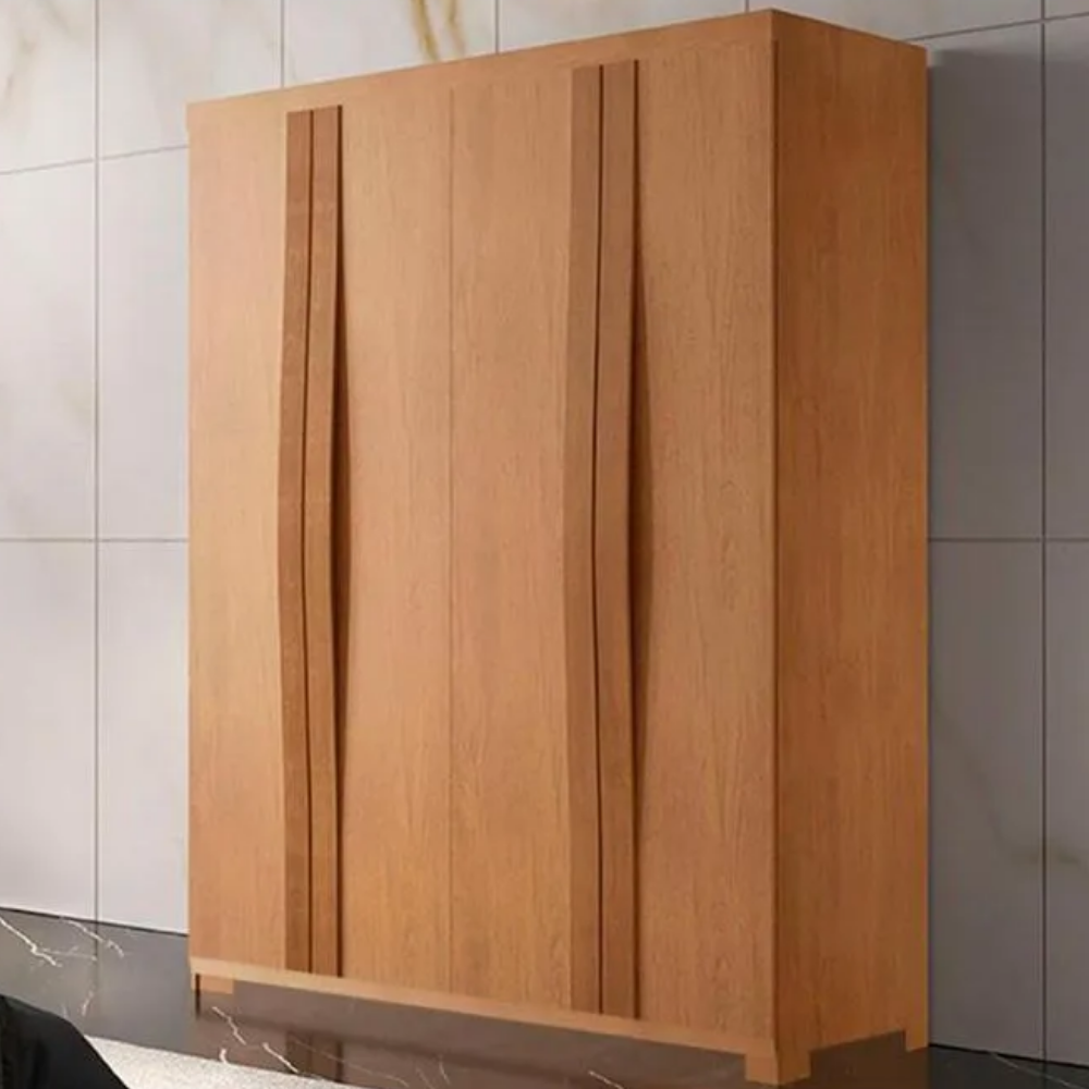 Estética Ripada de Alto Padrão: As portas possuem um detalhe ripado em alto relevo que transforma o guarda-roupa em uma peça de design, elevando o visual do quarto com sofisticação tátil e visual.