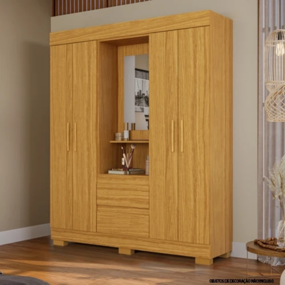 Praticidade Integrada: Possui espelho e 04 portas de abrir que facilitam o acesso e trazem amplitude ao quarto.